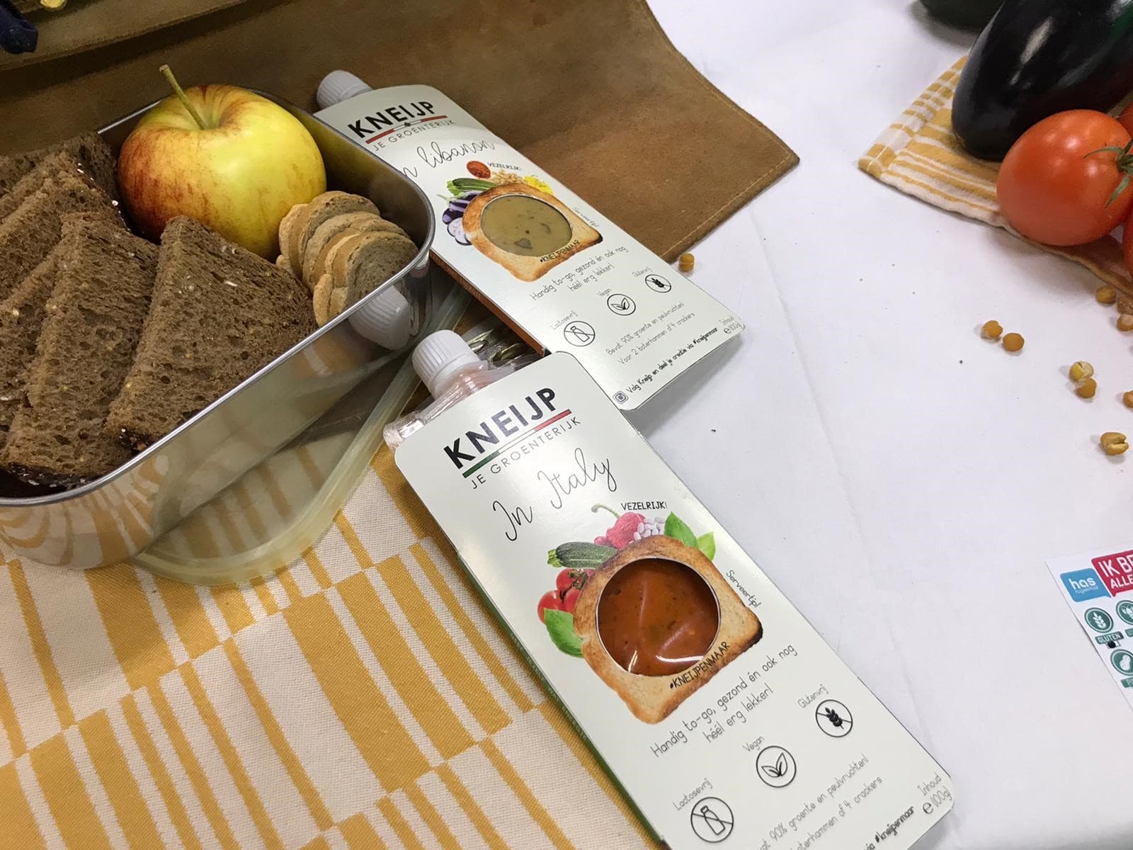 Nederlandse eten gemiddeld slechts 131 gram groenten per dag, terwijl de aanbevolen dagelijkse hoeveelheid groenten 250 gram is. Hoe kunnen we zorgen dat die consumptie omhoog gaat? Een van de mogelijkheden is om de groenteconsumptie op de werkvloer te verhogen. Vince Leufkens bedacht daarom 'Kneijp': een spread bestaande uit 90% groente. Met Kneijp neem je heel makkelijk groenten mee naar werk.