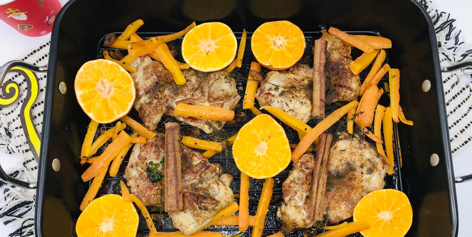 This recipe for carrot fries with chicken and tangerine from the oven is a perfect addition to your Sinterklaas feast. The carrot fries are a nod to the favourite snack of Ozosnel, Sinterklaas's horse, while the mandarin - a classic Sinterklaas delicacy - adds a sweet, fresh twist. Together with tender chicken from the oven, this dish makes for a colourful and festive meal that will please young and old alike. Ideal for enjoying on Christmas Eve while putting a healthy, cosy meal on the table.