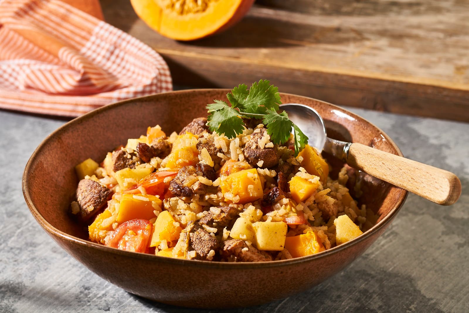 Indulge your senses with a delectable dish of chicken and pumpkin. This heart-warming recipe combines tender pieces of chicken with soft, sweet pumpkin, enriched with a delicious mix of herbs and spices. With its robust and inviting aromas, this dish brings cosiness straight to your dining table.