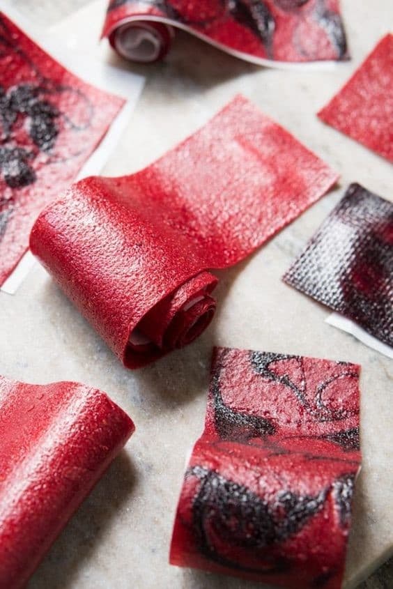 Veel kinderen (en volwassenen!) zijn dol op zure matjes. Maar wist je dat je heel eenvoudig een gezondere variant hiervan zelf kunt maken? Pureer fruit naar keuze, smeer het uit op een bakplaat en laat vervolgens in de oven 'uitdrogen' tot er een hele plaat ontstaat. Snijd deze in reepjes en rol op in leuke fruit roll-ups.
