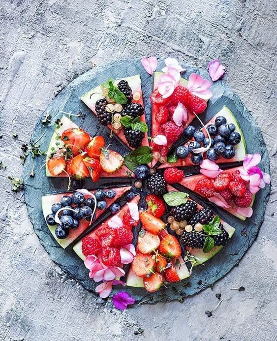 Kinderen zijn voor pizza altijd wel te porren, dus wedden dat deze watermeloenpizza er ook prima in gaat? Tip: laat de kinderen zelf helpen met het ‘beleggen’ van de pizza.
