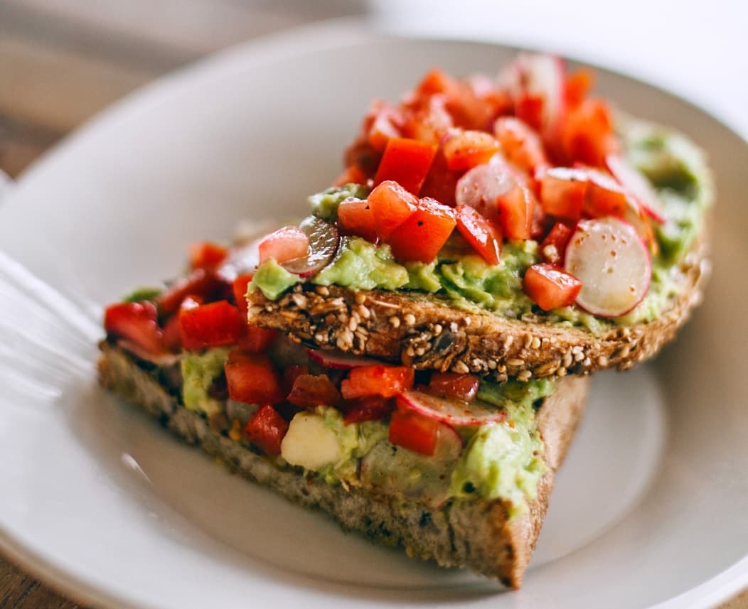 Maak een heerlijke guacamole om je boterham mee te beleggen en leg daarbovenop blokjes tomaat. Voor de guacamole prak je rijpe avocado in een bakje met een vork. Daar voeg je de volgende ingrediënten aan toe: fijngesneden of geperste knoflook; een beetje fijngesneden (rode of witte) ui; peper; zout. Als je dat lekker vindt kun je ook nog wat limoensap, kleine blokjes tomaat, verse of gedroogde koriander en een klein beetje crème fraîche of zure room toevoegen. Maak de guacamole zoals je hem zelf lekker vindt.