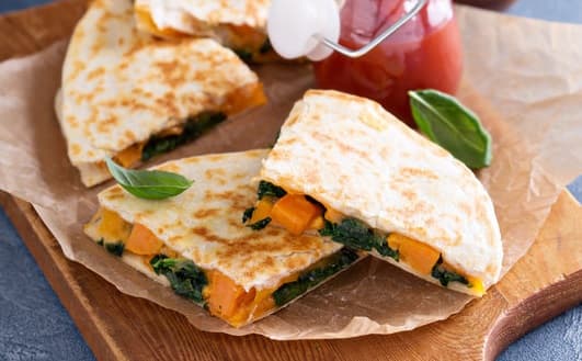 In dit recept krijgt boerenkool een verrassende rol in de Mexicaanse keuken. De combinatie met zachte zoete aardappel en gesmolten kaas maakt deze quesadilla smeuïg, vullend en vol natuurlijke zoetheid. De boerenkool geeft het geheel een hartige, groene twist en zorgt voor extra voedingswaarde. Perfect als lunch of als snelle avondmaaltijd wanneer je iets gezonds én comfortfood tegelijk wilt.