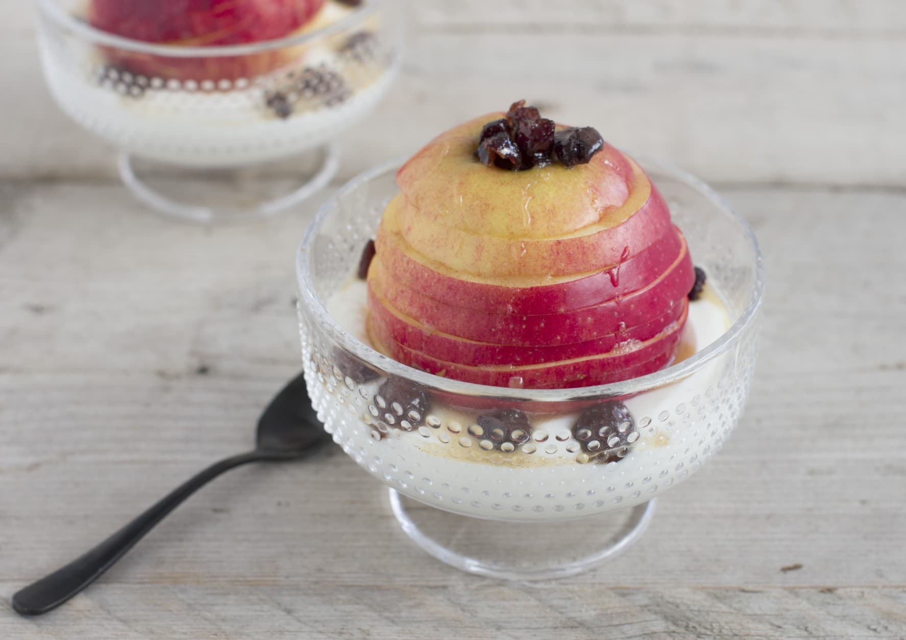Nagerecht: snel en gezond toetje met appel, honing en cranberries