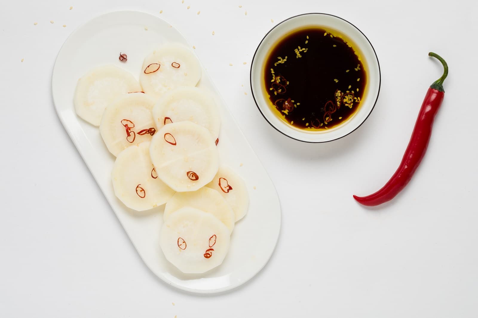 Of ga voor rettich met een Aziatische twist. Dit recept voor rettich met sojasaus en sesam is super makkelijk en origineel. Je moet alleen de saus een uurtje laten staan voor serveren zodat de smaken goed vrijkomen. Zo heb je in een handomdraai een origineel borrelhapje of bijgerecht bij je avondmaaltijd of lunch.