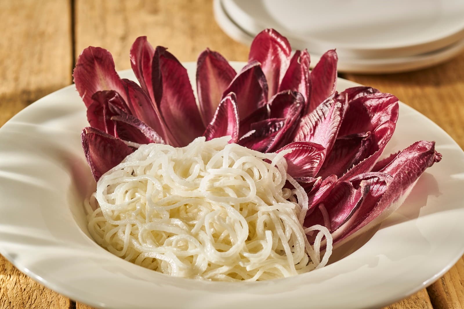 Nog een lekker recept is rettichsalade met gember en roodlof. Maak de rettich schoon en schil of snij deze in dunne reepjes of plakjes. Maak de rettichslierten aan met een dressing van yoghurt, yogonaise en gembersiroop (dit heeft een zoete smaak). Leg de rettichsalade in de blaadjes van roodlof en voilà: een heerlijke en verantwoorde snack of borrelhapje.