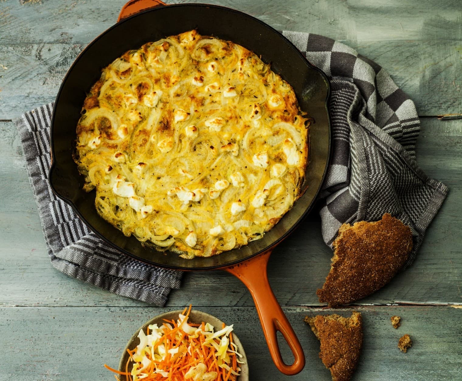 Maar dat is niet het enige. Wat dacht je van deze frittata met zoete uien, geitenkaas en rettich? Dit gerecht bereid je simpel in de oven: je gooit alle ingrediënten in een ovenschaal en wachten maar. Perfect als lunch of avondmaaltijd.
