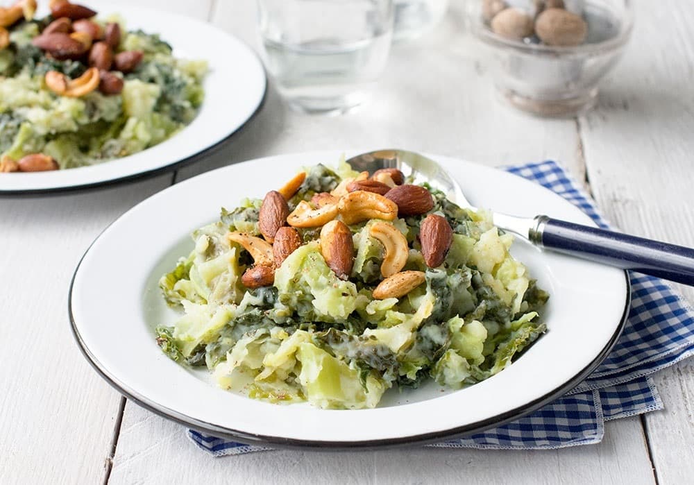 Stamppot groene kool met spicy noten