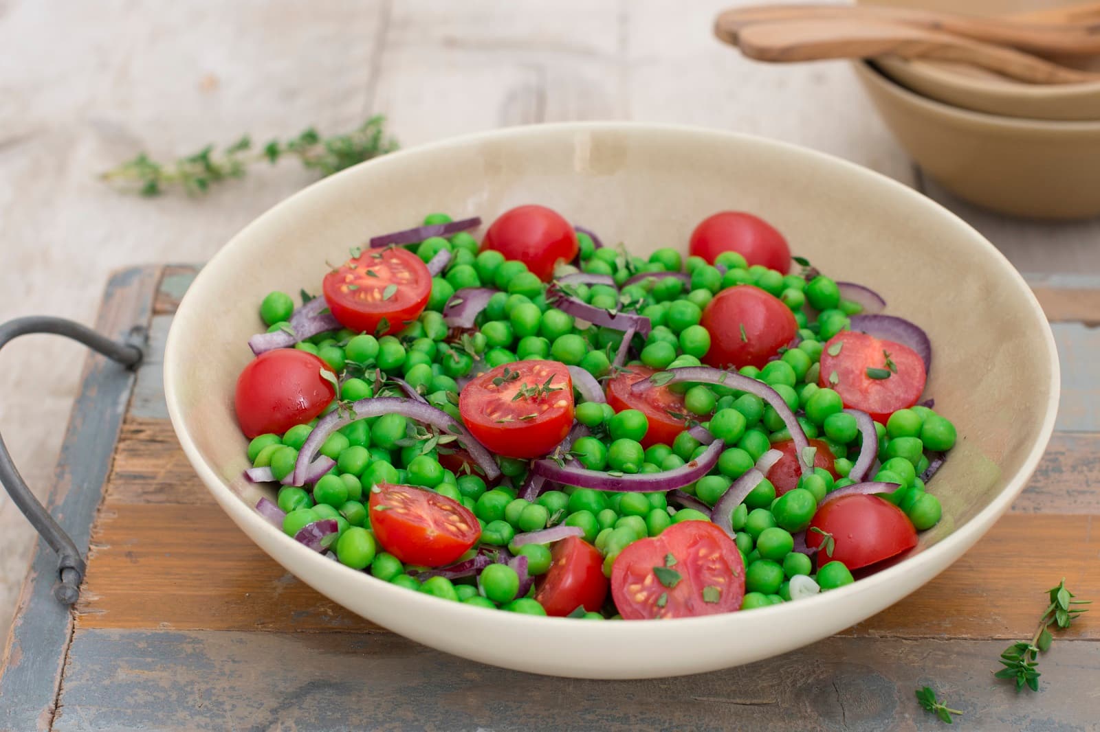 1. Doperwtensalade met rode ui en kerstomaatjes