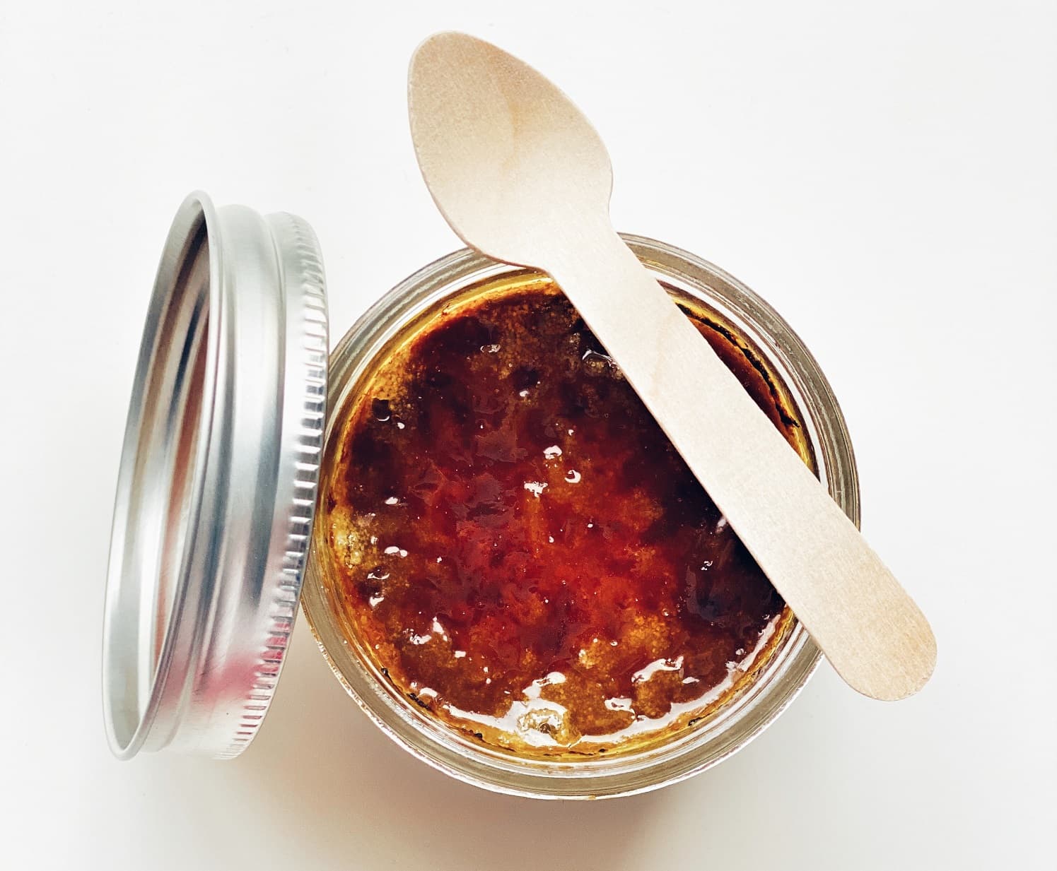 Laat de kweeperencompote afkoelen en verdeel het over potjes. Na het afkoelen kun je de compote nog enkele maanden in de koelkast bewaren.