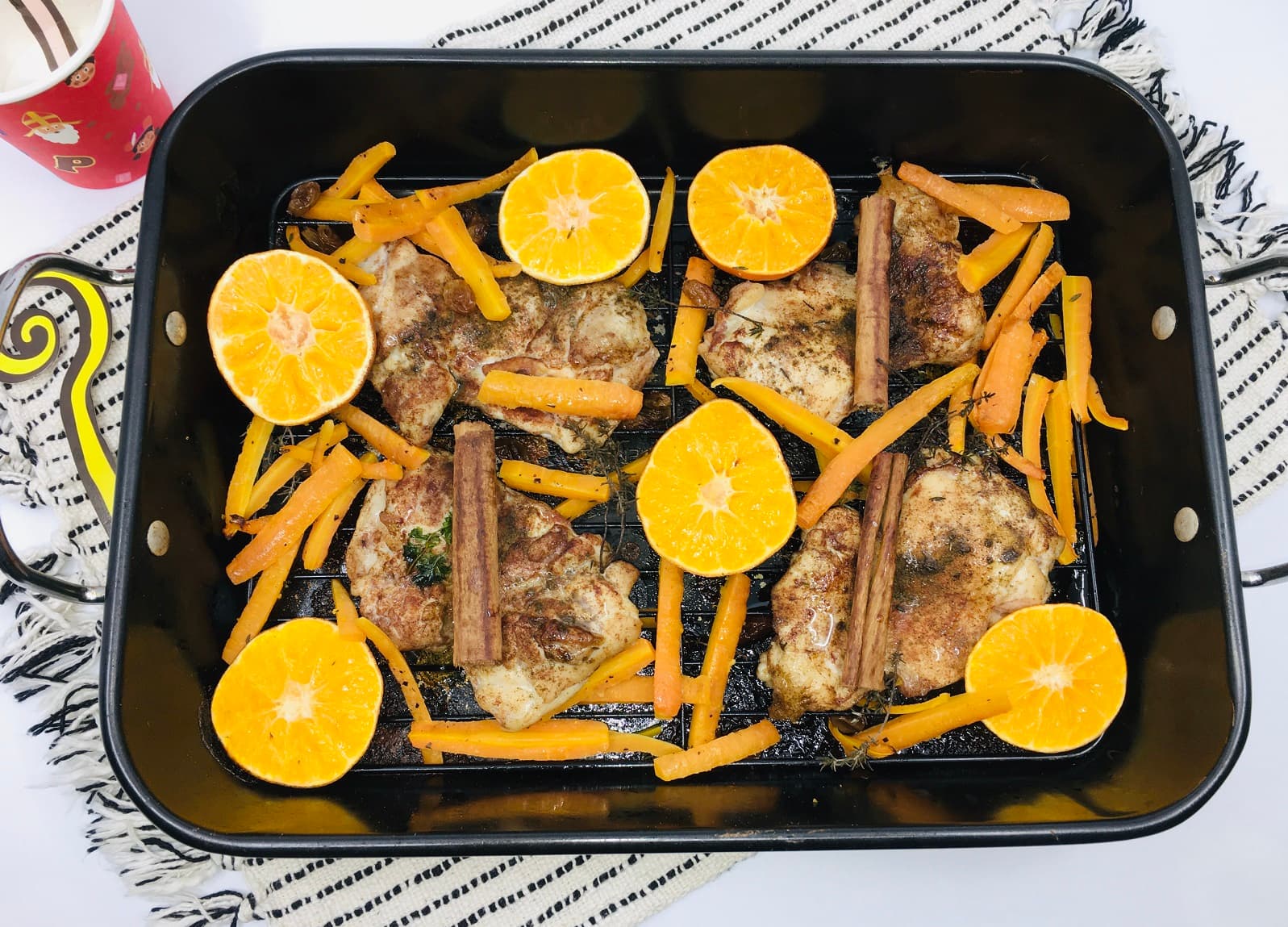 Hoe leuk is het om lekker met je handen te mogen eten? Dat kan met deze wortelfrietjes en malse kip uit de oven. Mmm, om je vingers bij af te likken!