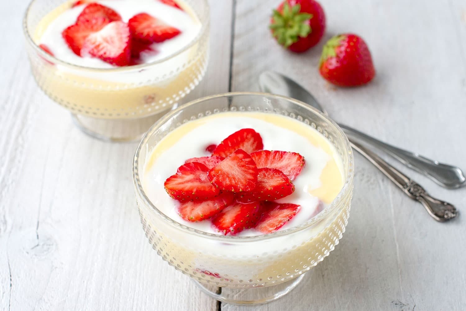 Rond je romantische Valentijnsdiner af met een klassiek dessert met een speelse twist: de vlaflip. Deze vrolijke combinatie van romige vanillevla, frisse yoghurt en zoete siroop zorgt voor een perfecte balans tussen zoet en zuur. Dit eenvoudige maar heerlijke nagerecht is niet alleen snel te maken, maar ook een leuke manier om je diner feestelijk en nostalgisch af te sluiten. Een ideale zoete traktatie om samen van te genieten en de avond op een lichte en luchtige manier te laten eindigen!