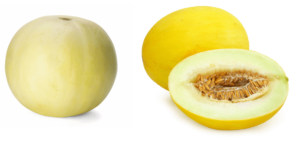 Honingmeloen wordt ook wel honeydew meloen , suikermeloen of gele meloen genoemd. De schil van de honingmeloen is glad en geel van kleur. Het vruchtvlees is oranje. Deze exotische vrucht wordt alleen in zonnige gebieden geteeld zoals Frankrijk, Chili, Zuid-Afrika en Israël.