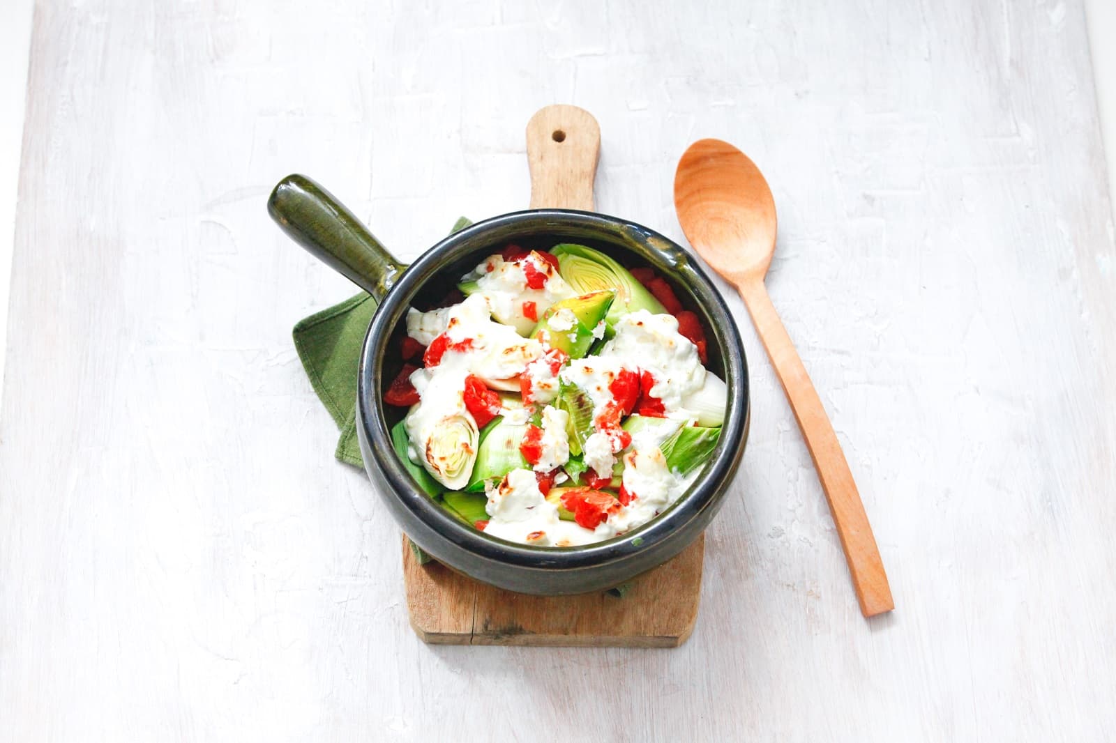Prei met geitenkaas uit de oven