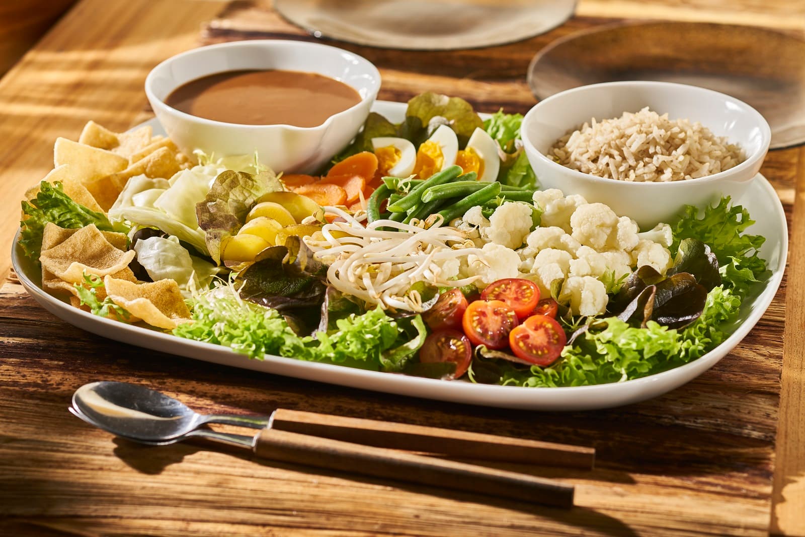 Dit verrukkelijke gerecht is een viering van diverse groenten, tofu en een kenmerkende pindasaus die samen een harmonieuze symfonie van smaken en texturen vormen. Gado gado, wat letterlijk 'mix-mix' betekent, nodigt je uit om te genieten van een gevarieerde en voedzame maaltijd die niet alleen vegetarisch is, maar ook nog eens gezond.
