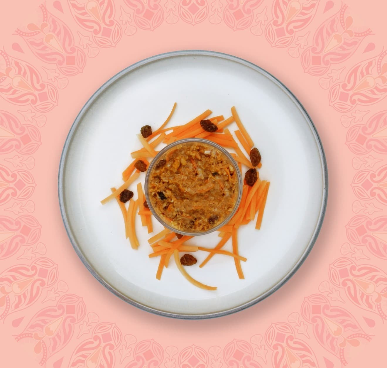 Om daar nu ook lekker zelf mee aan de slag te kunnen heb ik het recept van de Vegan Carrot Cake variant uitgewerkt. Met het recept kun je ongeveer 300 gram Carrot Cake Veggie Oats maken. Dat zijn twee kleine porties, of één grote waarmee je dan al meteen aan 50% van je ADH aan groente komt.