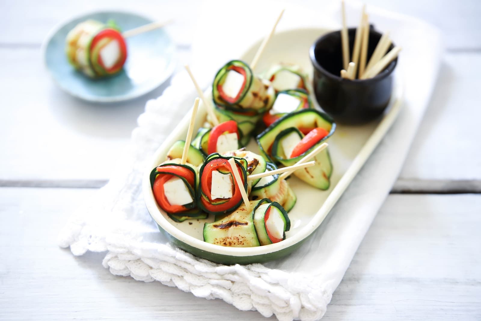 Verras je gasten met deze courgetterolletjes met gegrilde paprika en feta, heerlijk als borrelhapje. Een hapje die jij binnen een korte tijd zo op tafel zet en waar je met zijn alle van geniet. Niet alleen omdat het hapje heerlijk smaakt, maar ook omdat er stiekem 50 gram groenten per persoon in verwerkt is. Zo geniet je samen van een gezonde snack tijdens de jaarwisseling.
