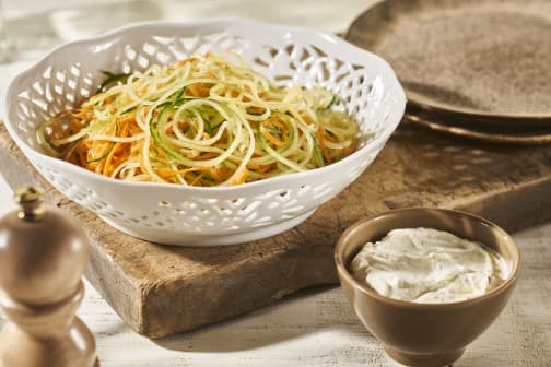 Dit recept biedt een heerlijke manier om meer groenten aan je dieet toe te voegen, terwijl je geniet van de romige en aromatische kruidenkaassaus. Perfect voor een snelle lunch of een doordeweekse avondmaaltijd, combineert deze groentespaghetti eenvoud met verfijning. Een gerecht waarin komkommer wordt gecombineerd met andere groenten.