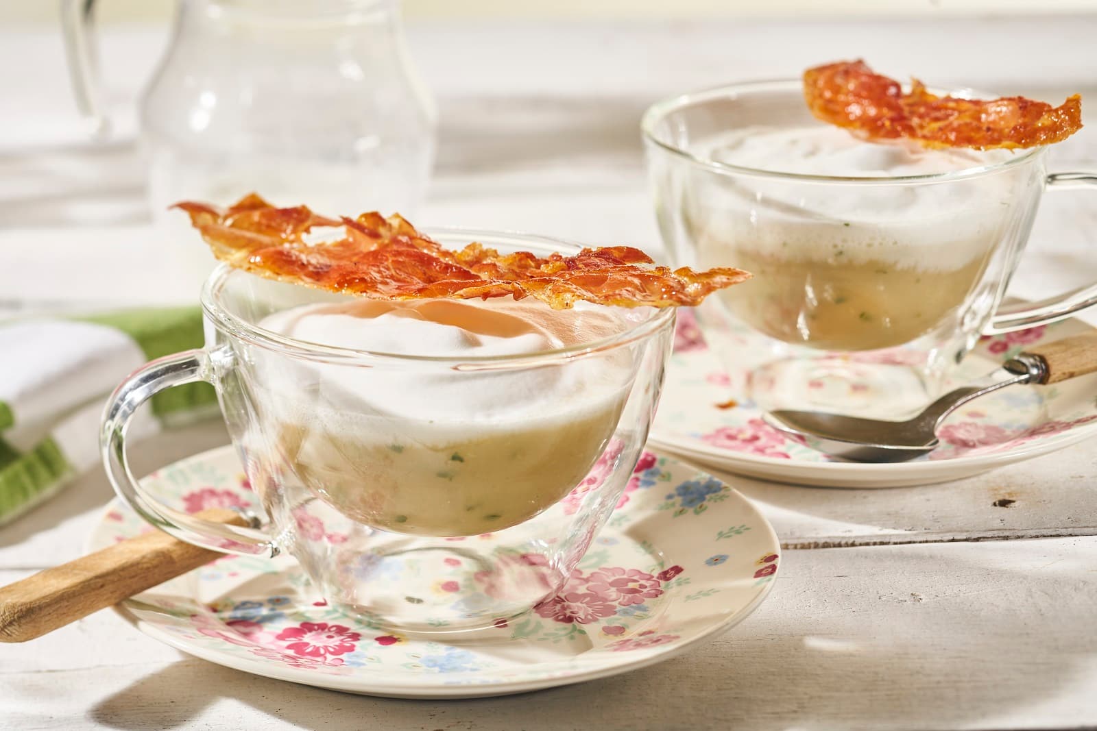 Ons kerstpakket bestond dit jaar uit een tas vol met groenten, inclusief Veggipedia recepten. Een van de recepten was deze 'cappuccino van venkel'. We hebben thuis alleen geen staafmixer, dus het pureren ging niet bepaald smooth. Het werd uiteindelijk een cappucino met stukjes venkel, ook erg lekker!